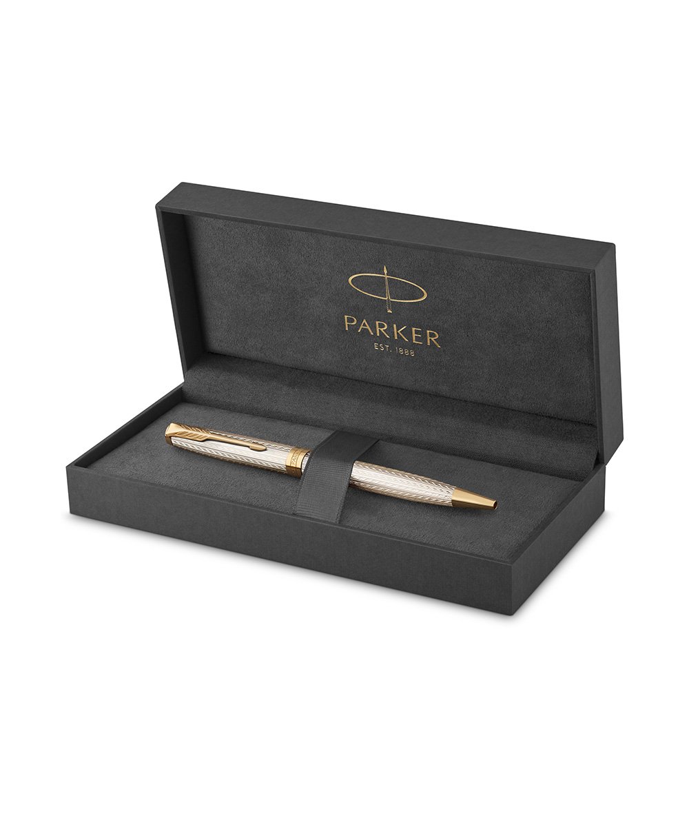 Ручка шариковая Parker Sonnet Premium Silver Mistral GT от официального дилера Parker в Челябинске. Вы можете дополнительно заказать гравировку, которая подчеркнет Вашу оригинальность и придаст памятность статусному подарку. Все ручки Паркер поставляются в фирменном футляре.